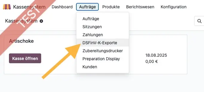 Odoo ist das Programm, mit dem du im Alltag arbeitest – zum Beispiel für deine Kasse, Verkäufe oder Rechnungen. Dort werden alle Buchhaltungs- und Kassendaten gespeichert. Außerdem kannst du deine Daten jederzeit exportieren, etwa für deine Steuerberatung (DATEV-Export, CSV-Dateien) oder für eine Kassenprüfung (DSFinV-K-Export).